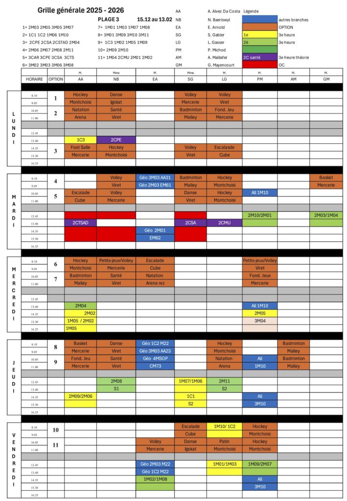 Pour la 3ème heure les cours ont lieu selon le tournus Viret-Mercerie.